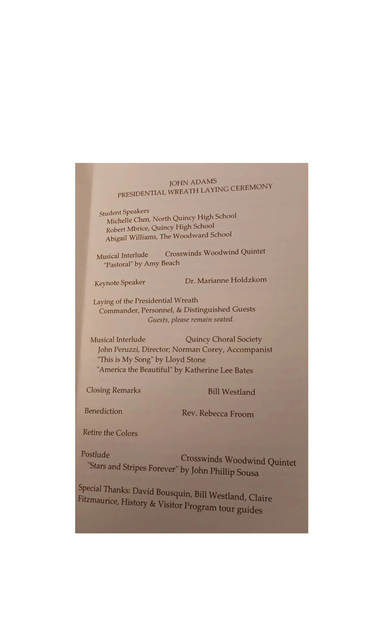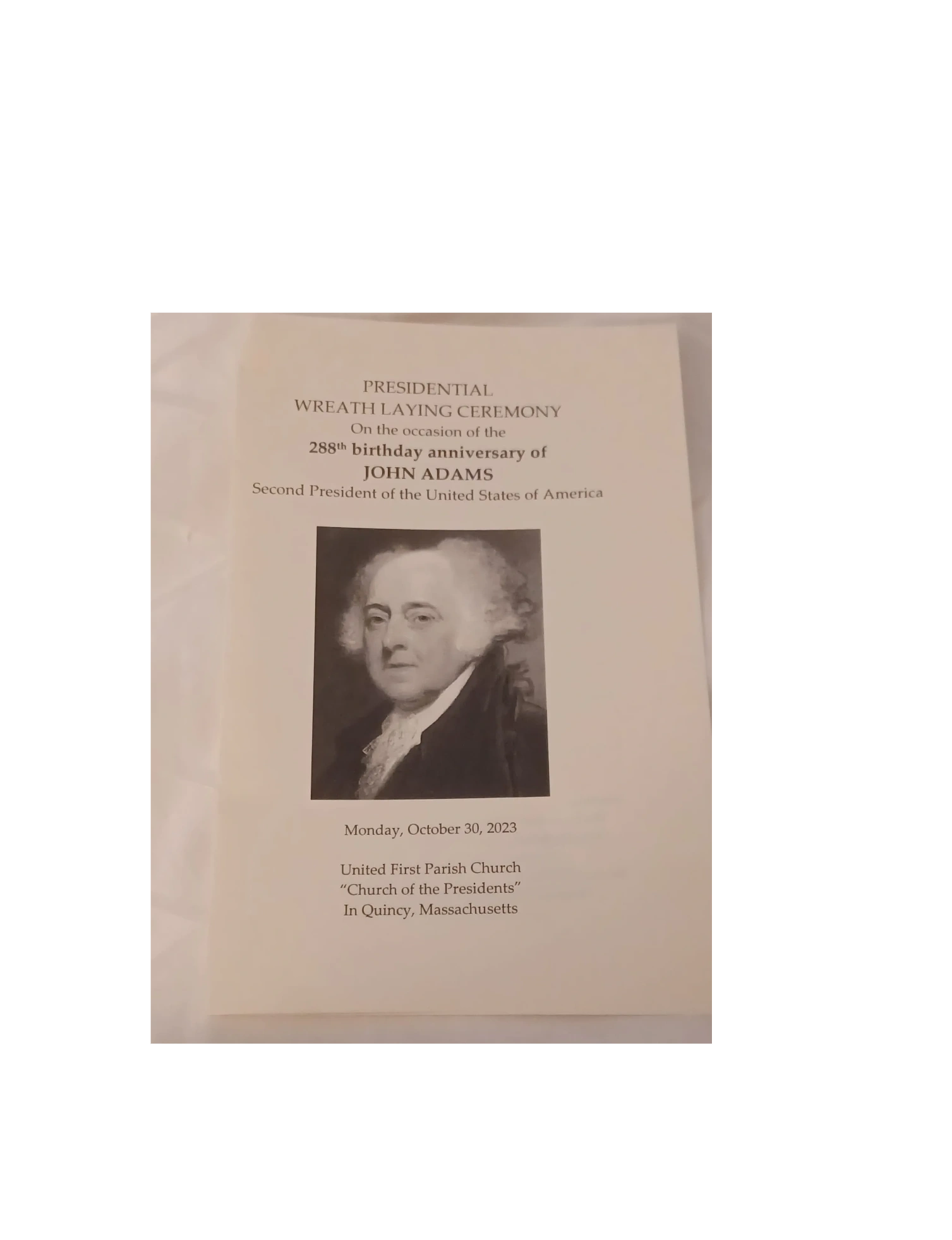 The Presidential Wreath Laying Ceremony in honor of John Adams's 288th birthday. I was the keynote speaker for the event. My remarks begin at 47:35.
